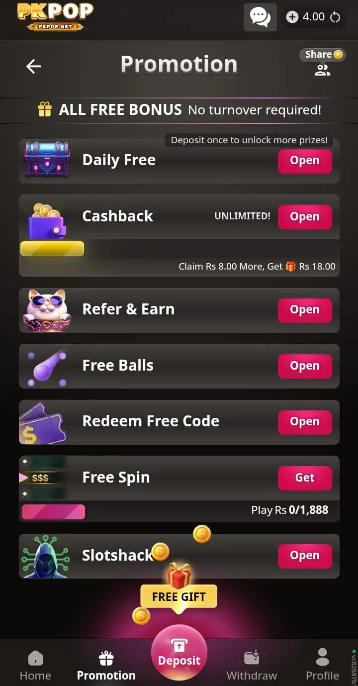 - Multiple Game Options: However, from card games to spins, slots, and lucky draws, PKPOP offers endless entertainment.