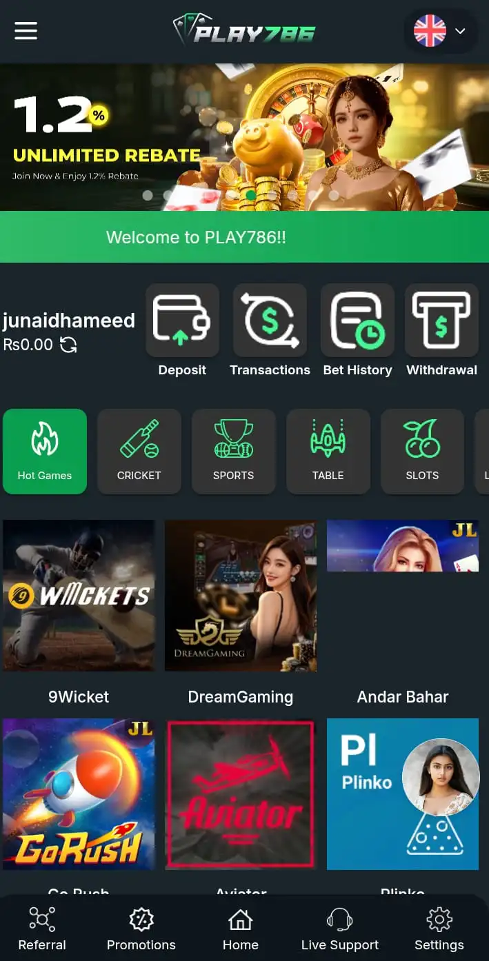 Play 786 is a similar wide digital gaming platform where you can play all kinds of games according to your choice, including numerous games like Slot, Casino, Lucky Spin, Sport, and Challenges.